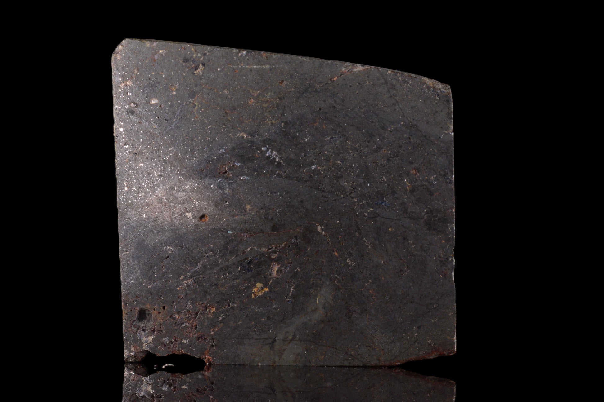 This rare ordinary chondrite from the L group has undergone secondary melting, creating a stunning microporphyritic texture. It contains well-defined olivine and pyroxene grains with traces of FeNi metal and sulfides, revealing a history of intense thermal processing on its parent body. Found near Talsint, Morocco, this meteorite shows a brownish matrix without fusion crust — a striking example of natural planetary melting.